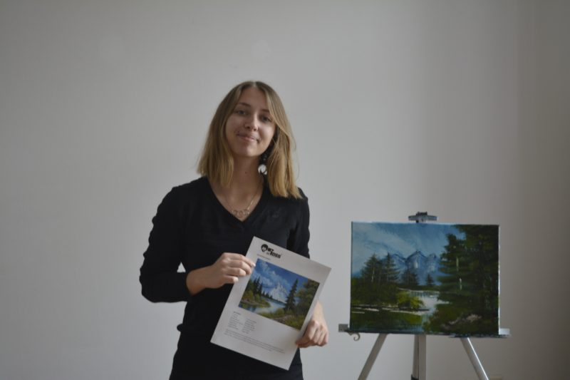 The kit and the tutorial are primarily designed to make beginners acquainted with painting equipment. It gives guidelines on how to use the brushes and knife to the best effect. It’s not about getting the same painting as Bob Ross, but being creative and also making your own decisions.